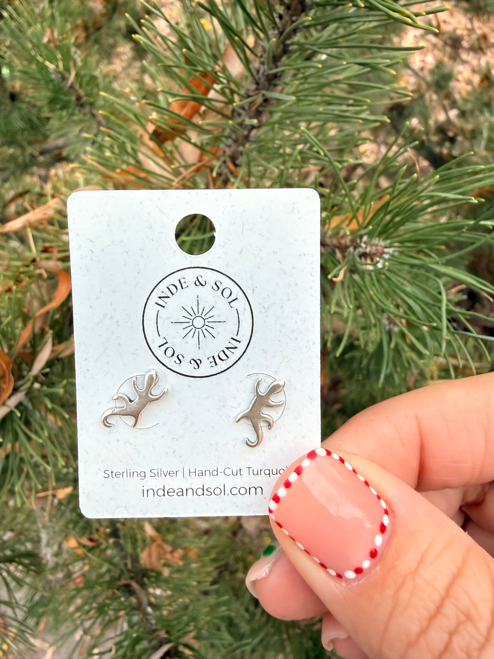 Handcrafted by my dad using traditional silversmithing, these playful lizard studs are made from solid sterling silver and polished by hand. A fun, lightweight everyday pair with a touch of Southwestern charm.