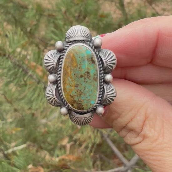 Navajo Turquoise Statement Ring — Edward Piaso (Size 7)