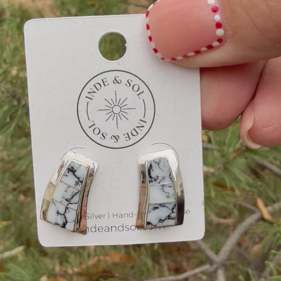 Simulated White Buffalo Inlay Earrings - Sterling Silver
