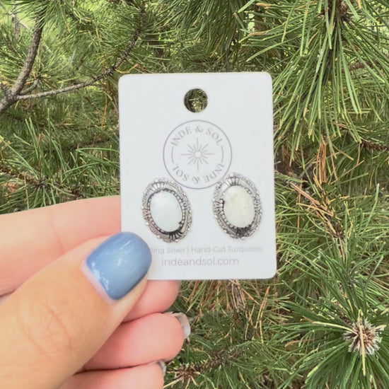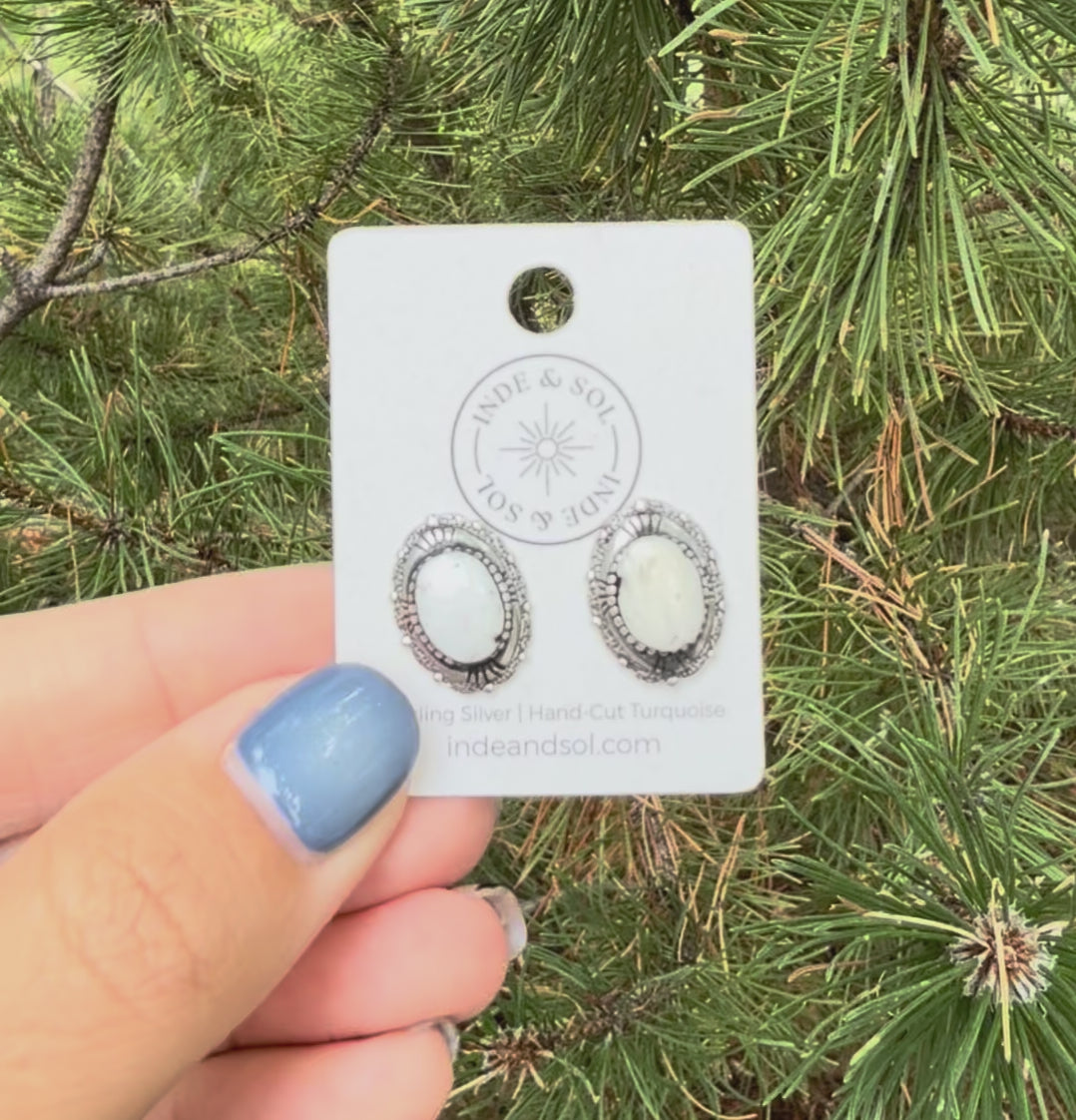White Buffalo Oval Studs